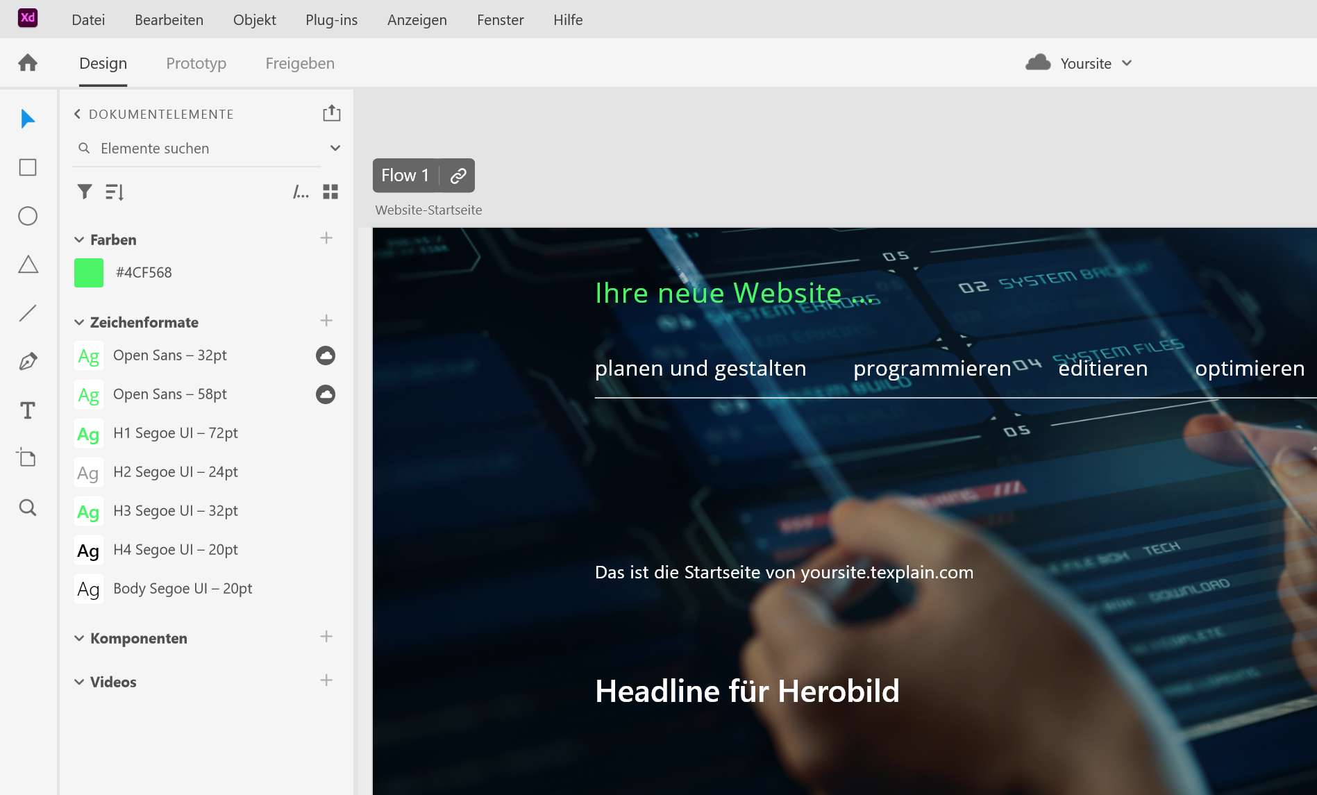 Wir konzipieren den Inhalt von Schlüsselseiten, die wir mit Adobe XD in einen interaktiven Entwurf umsetzen.